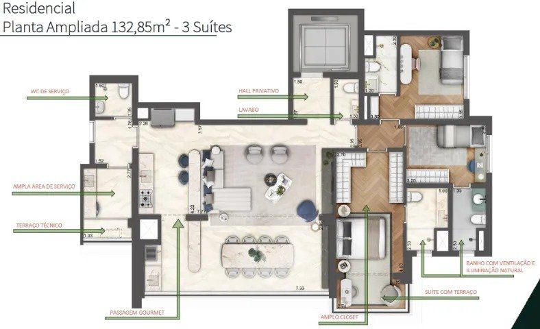 Imobiliária no bairro BUTANTA, Apartamento à venda no bairro BUTANTA com: 2 vagas, 3 suites, 8 banheiros, 3 dormitórios, com área útil de 132 m².